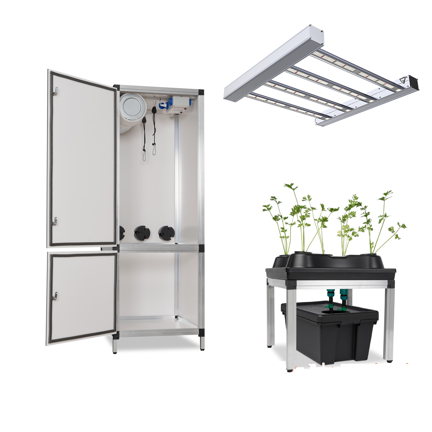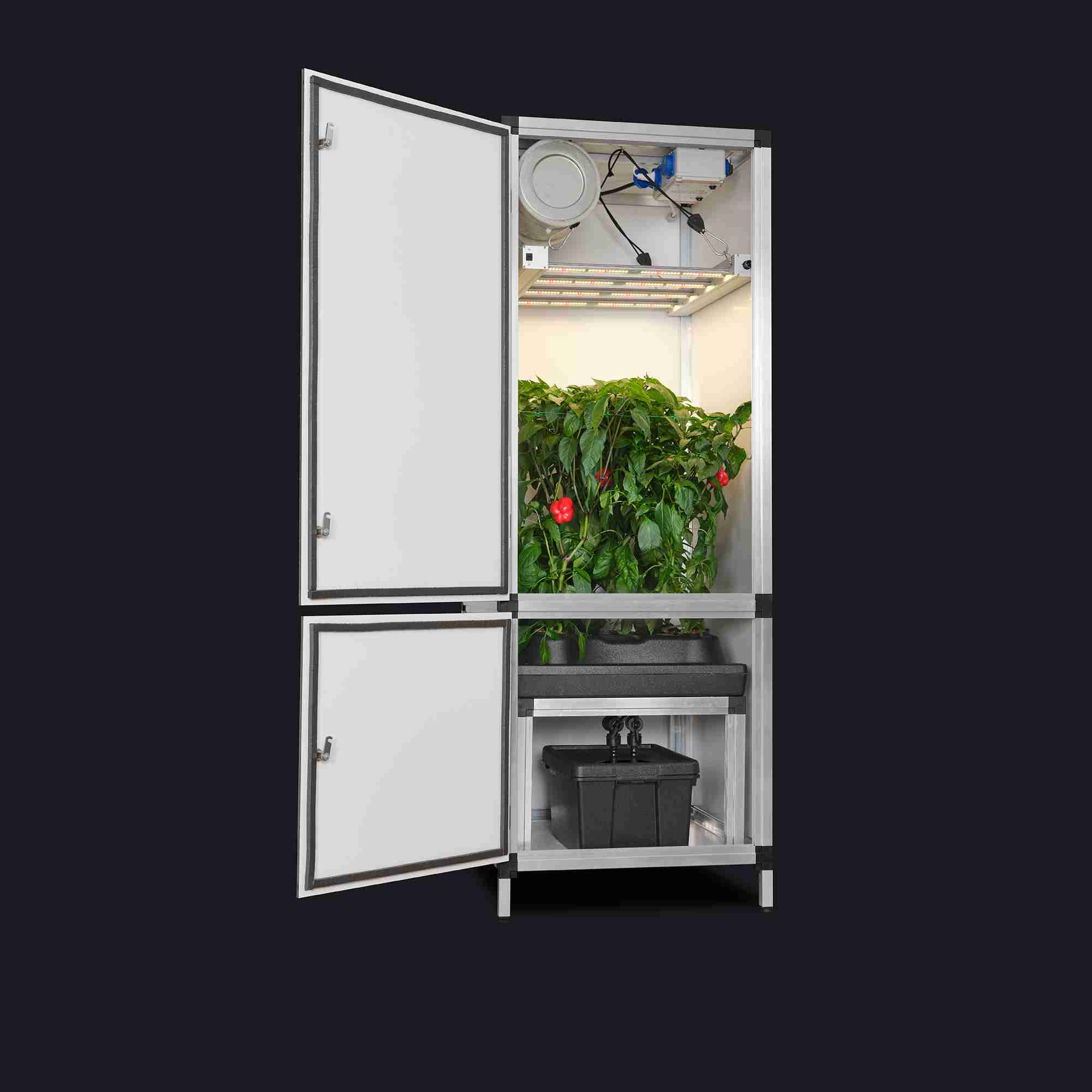 • Irrigatiesysteem: 3-in-1 (druppel, eb & vloed, hydro) met app-gestuurde Smartbox