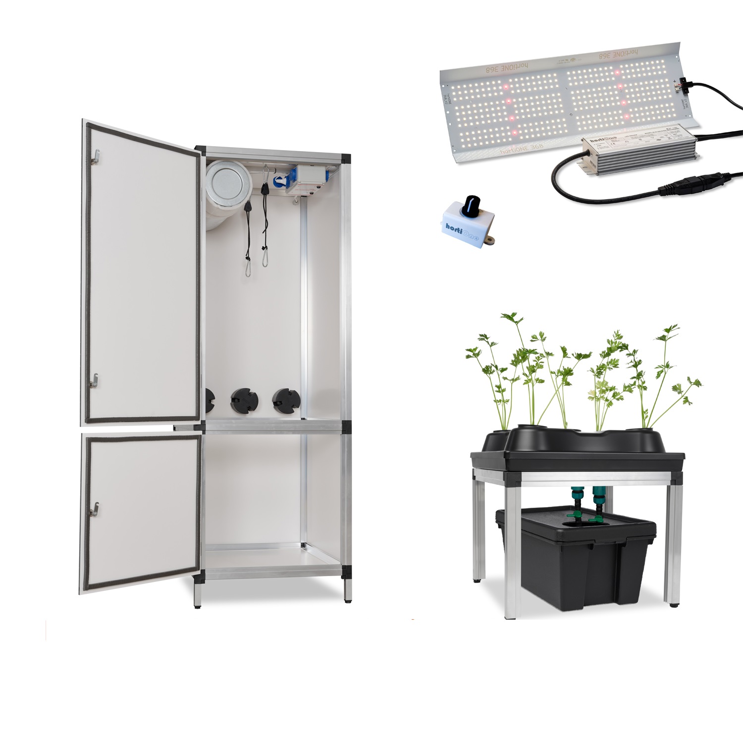 Bonanza Clima 0.35m2 met Hortione 420 150W en 3in1 irrigatiesysteem