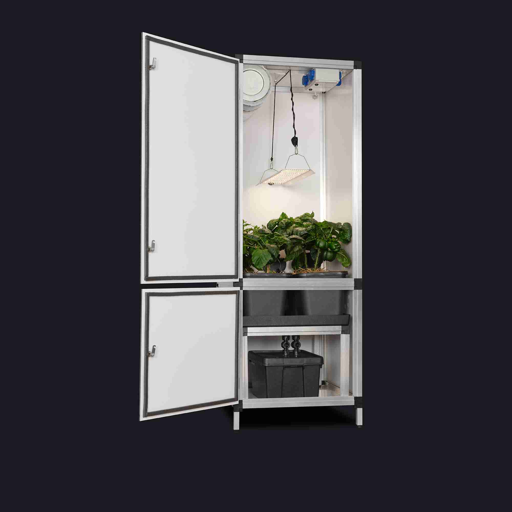 De kweekkast biedt ruimte voor maximaal 9 kleine planten (6.5L potten) of 4 grotere planten (11L potten).