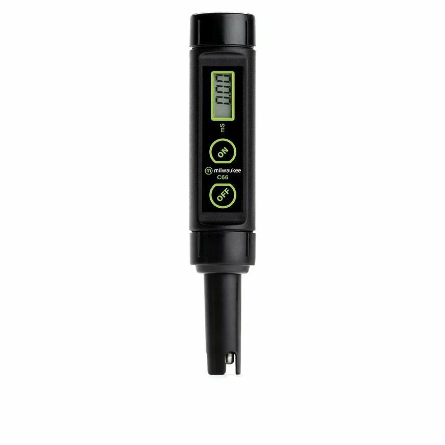 Milwaukee Pocket Tester EC C66 is een IP65 waterdichte, geleide EC tester speciaal ontworpen voor de hydrocultuur- en agrarische markten. De EC-meter met automatische temperatuurcompensatie en 1-punts handmatige kalibratie heeft een bereik van 0,00 tot 10,00 mS/cm.