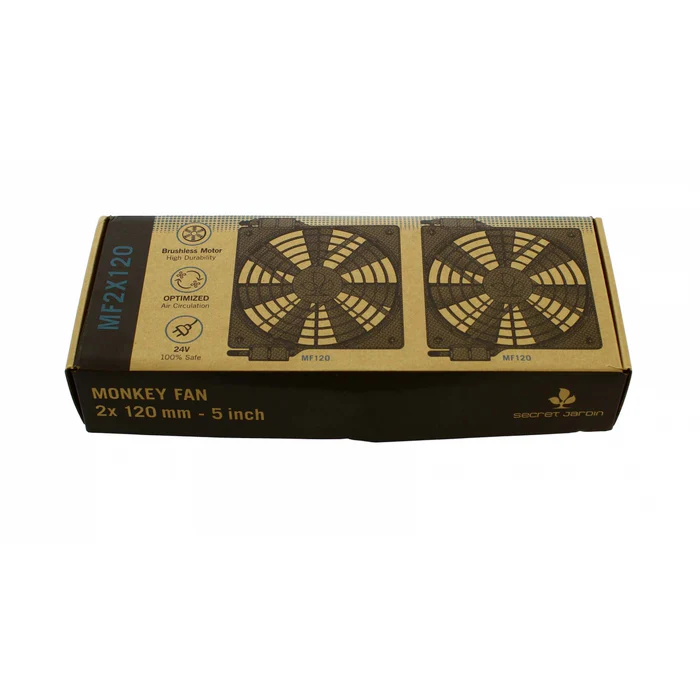 In de Secret Jardin MF2X120 Monkey Fan 24V Duopack zitten er 2 stuks MF120 ventilatoren in één verpakking.
